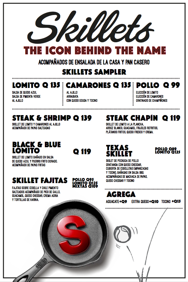 Cuando se trata de restaurantes diseñados, en Guatemala, Skillets es sin duda The Original Gangsta. Skillets marca el antes y el después. Es el parte-aguas. Hoy existe toda una serie de restaurantes con logo, concepto, menú, luz, uniformes, ambiente, música, espacio con propósito y razón de ser. Restaurantes de "diseño". En todas las categorías. Mexicano, Fast Casual, Gourmet Dining, Fast Fine, Pasta, Pizza etc. Nos encanta haber estado al inicio esta ola. Al final el gran ganador es el consumidor, su estomaguito y su corazón que hoy por hoy, hace de Skillets uno de sus restaurantes favoritos y que además provoca orgullo en los chapines al enterarse que es una marca 100% Guatemalteca. Go Skillets! #FoodLovers